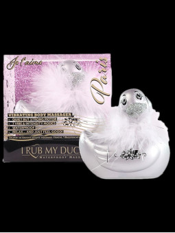Le fameux canard vibrant prend des allures de belle parisienne avec son boa et son bec en strass.